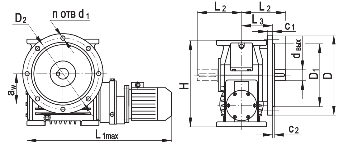 aw D D1 D2 Н L L1max L2 L3 c1 с2 d1 dвх dвых