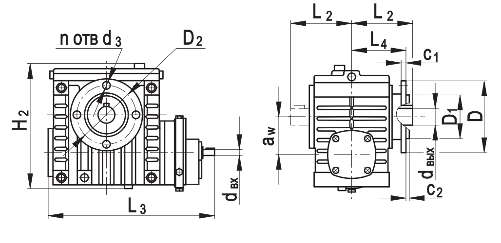 aw D D1 D2 Н2 L2* L3* L4 L5max С1 С2 d3 dвх dвых